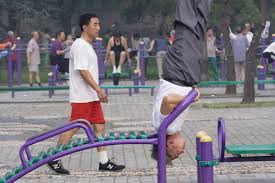 pratica tai chi. Ovviamente non manca gente che corre in pigiama. Gente che